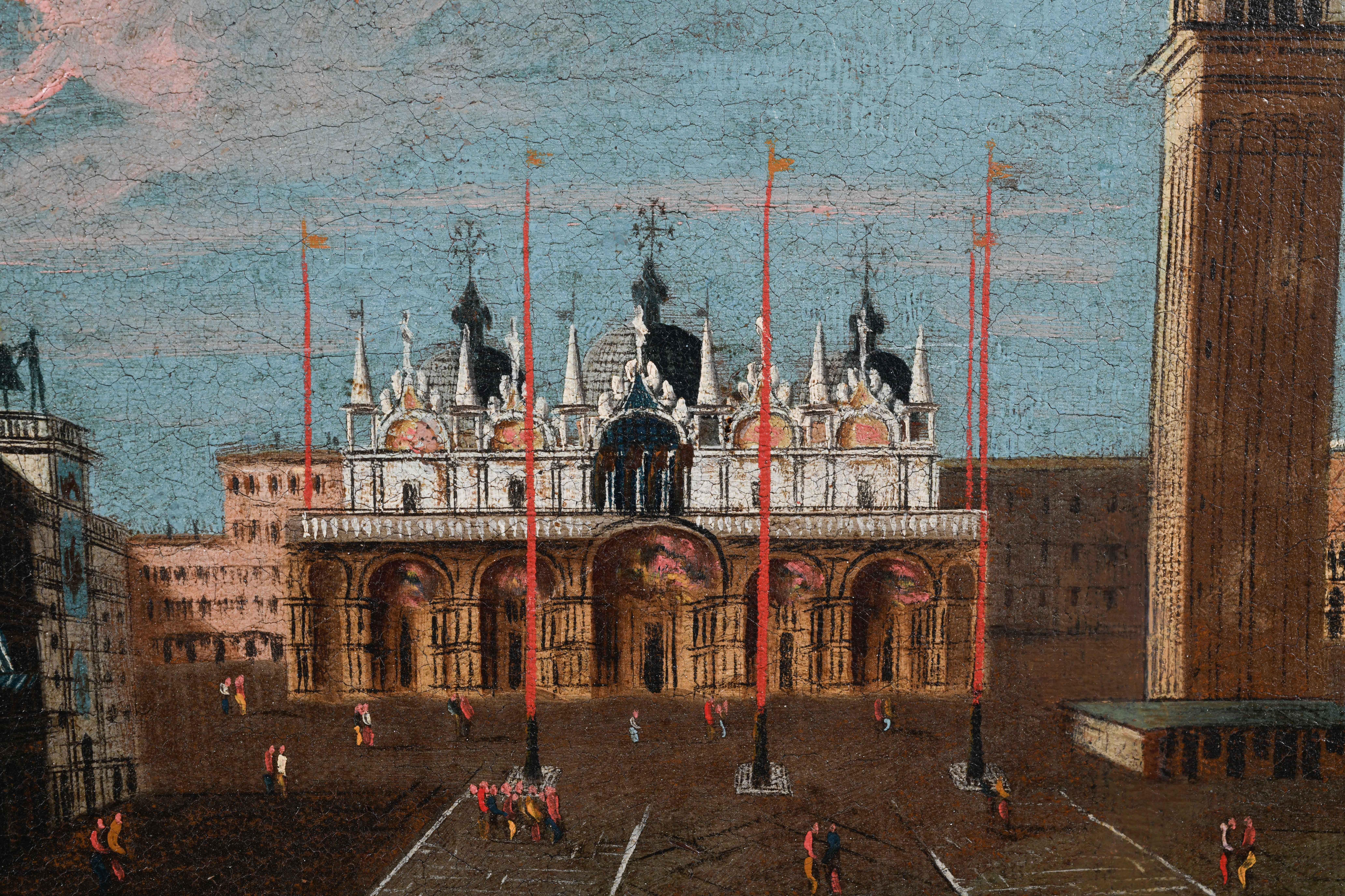 Questa bellissima coppia di Vedute raffiguranti due dei più famosi siti di Venezia , la piazza San Marco verso la Basilica ed il molo dal bacino di San Marco, sono opera di Gabriel Bella ( Venezia 1730 - 1799 ) .