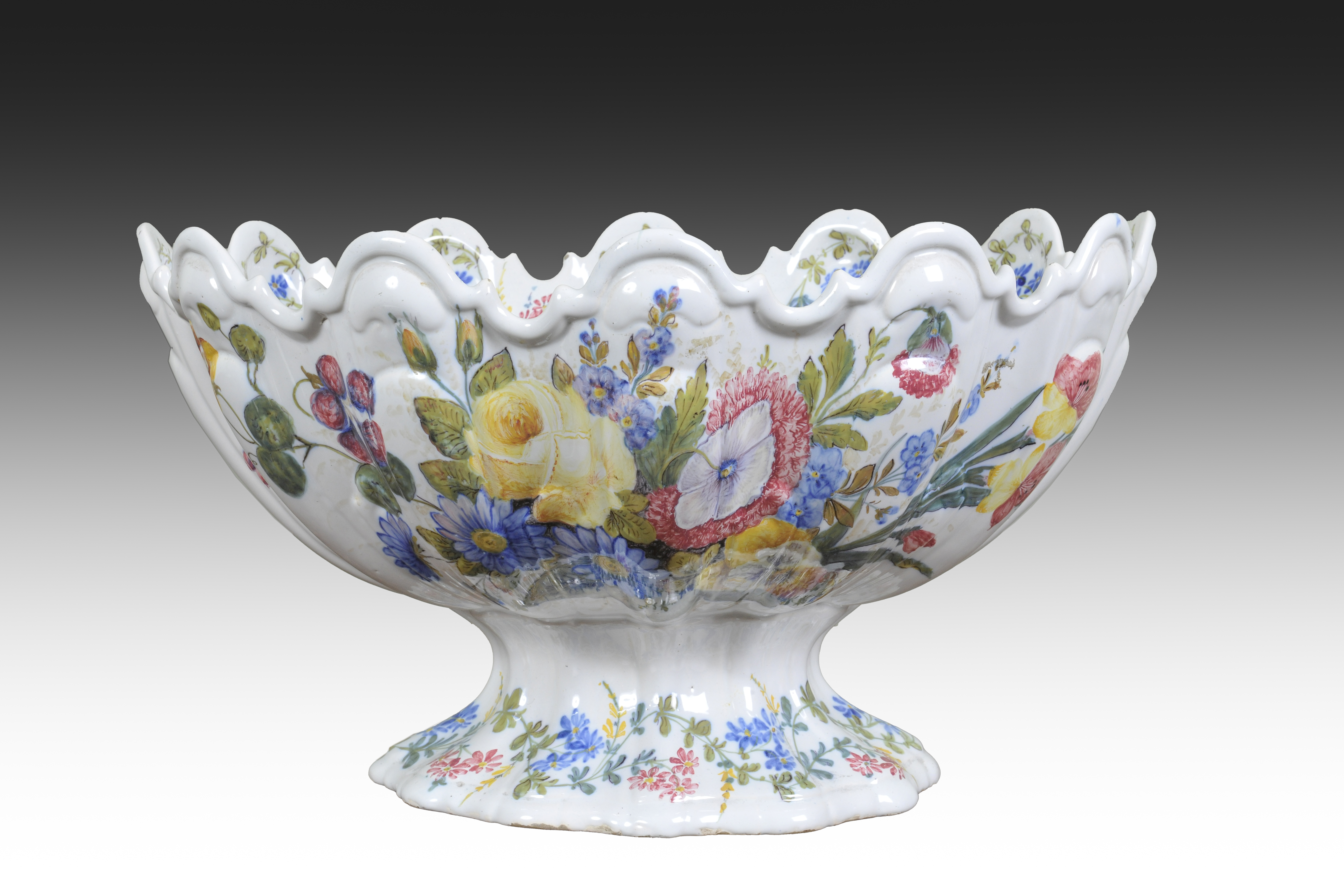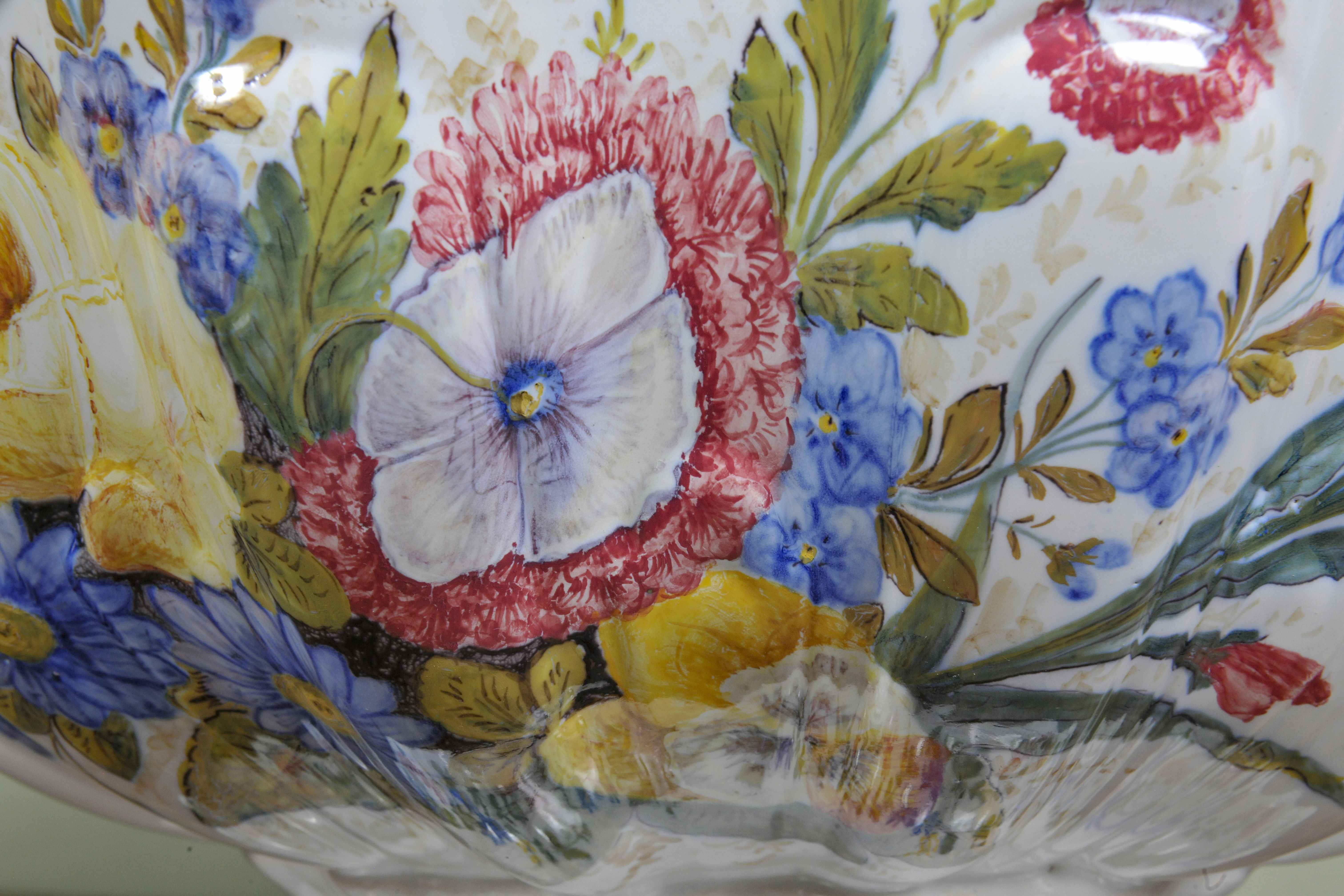 Rinfrescatoio policromo dipinto a motivo floreale siglato alla base della manifattura di Nove di Bassano .L' utilizzo di questo oggetto serviva per rinfrescare i calici per il vino .