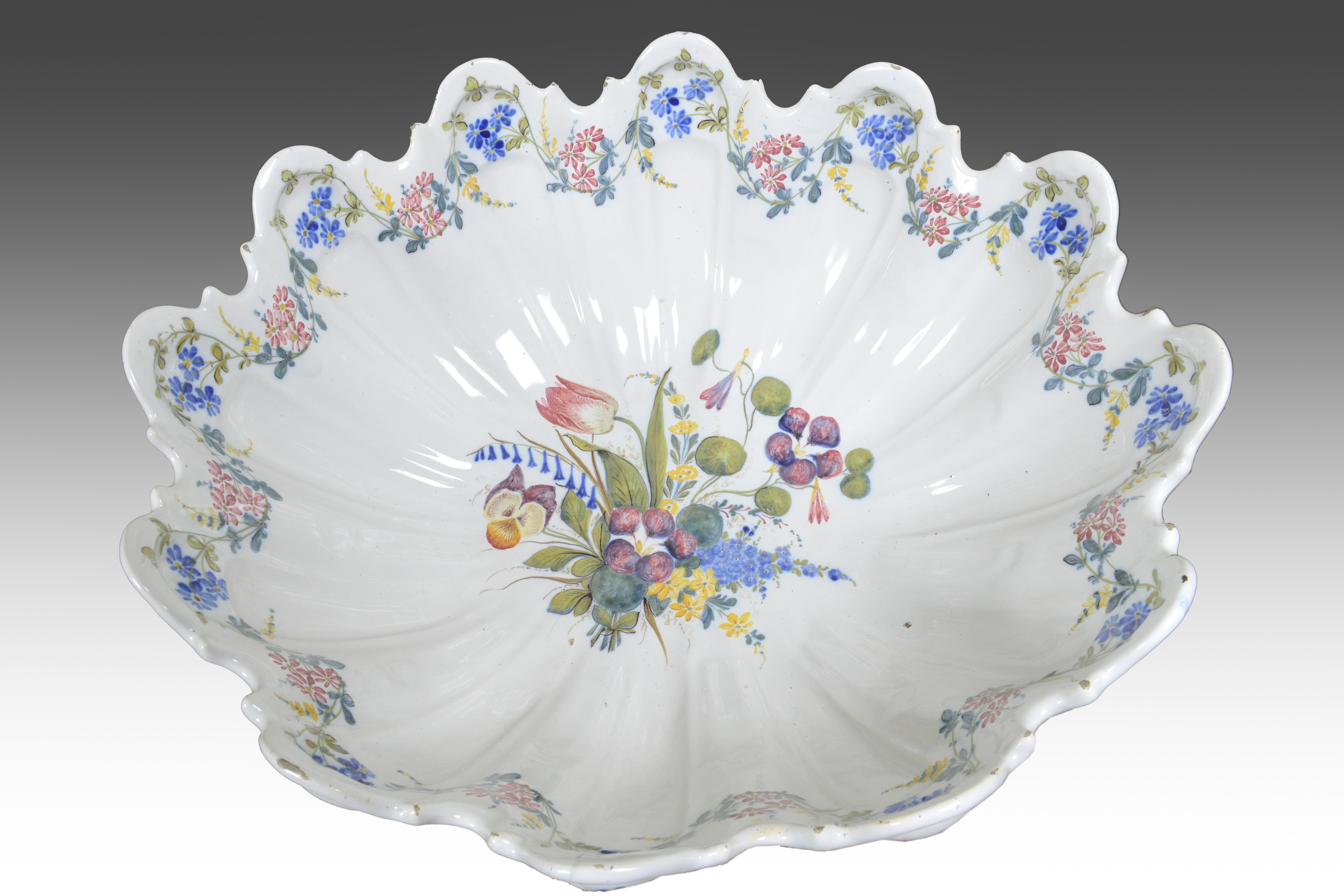 Rinfrescatoio policromo dipinto a motivo floreale siglato alla base della manifattura di Nove di Bassano .L' utilizzo di questo oggetto serviva per rinfrescare i calici per il vino .